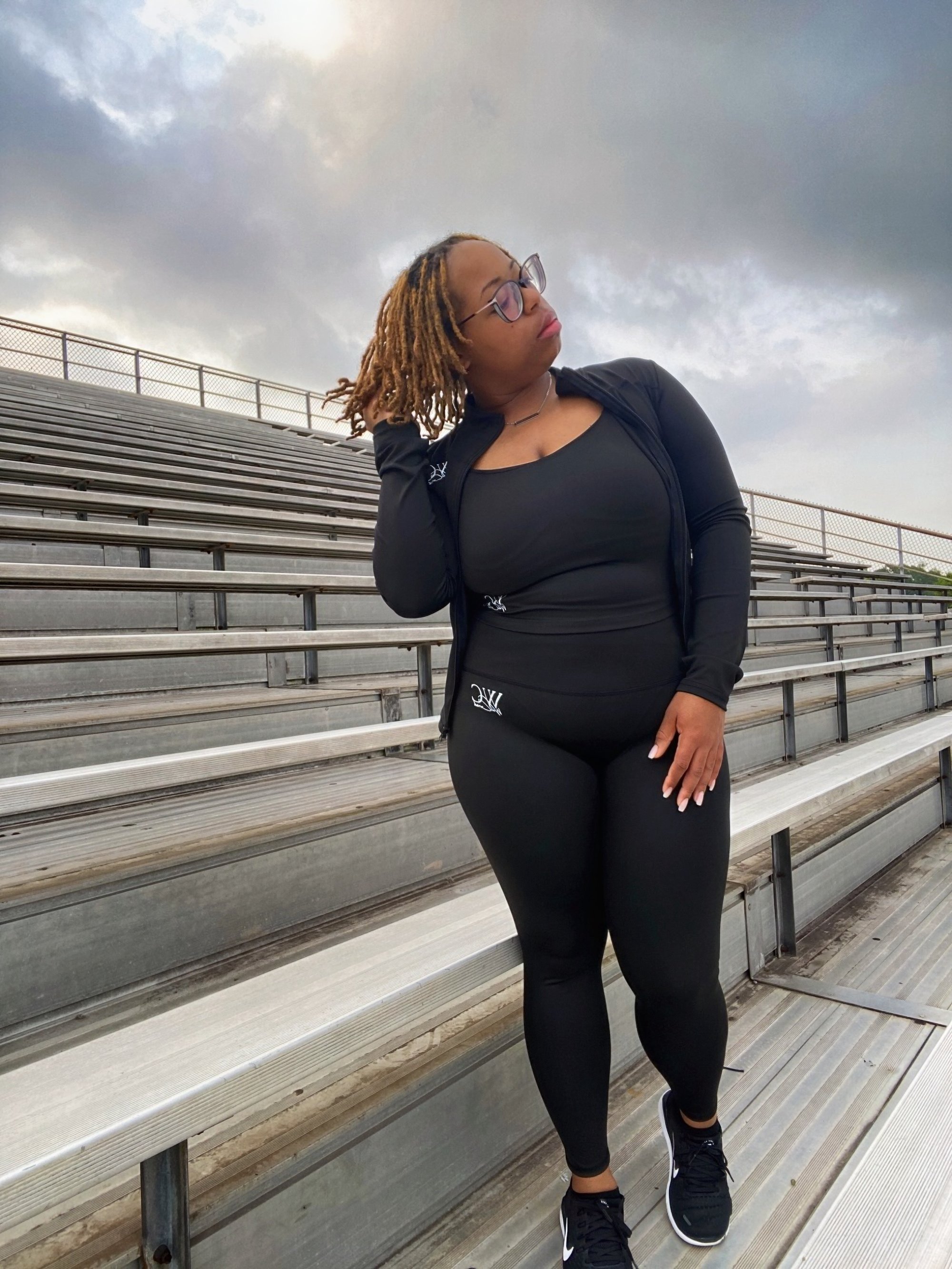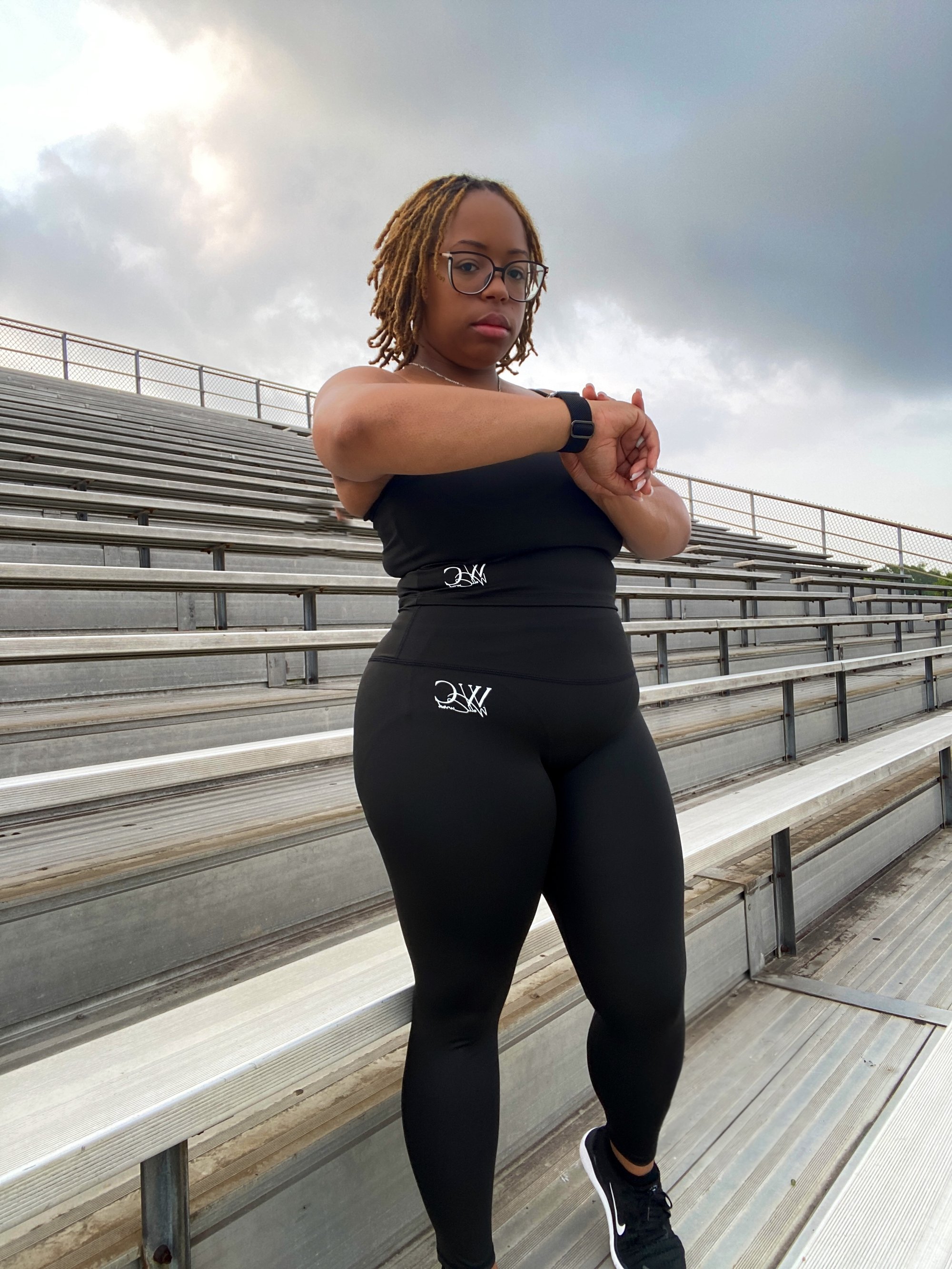 Rendered in rich, jet-black fabric, this set merges elevated activewear with effortless elegance — ideal for everything from studio sessions to city strolls. This is a compression fitted set so it hugs your body in all the right places and will portray a fitted look.